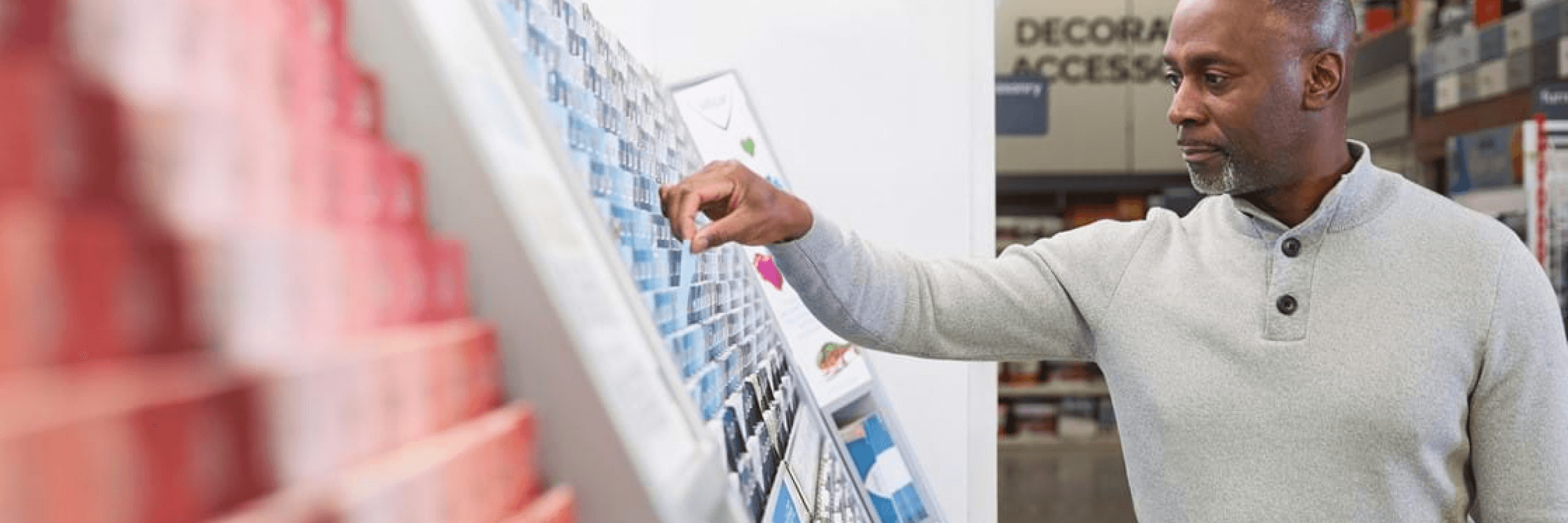 Podejdź do stanowiska z mieszalnikiem farb. Nasz zespół zeskanuje próbkę i stworzy unikalną formułę Twojego koloru.